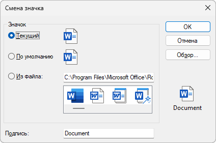 Обеспечивает возможность выбора значка из файла (допустимые типы файлов: EXE, DLL и ICO).