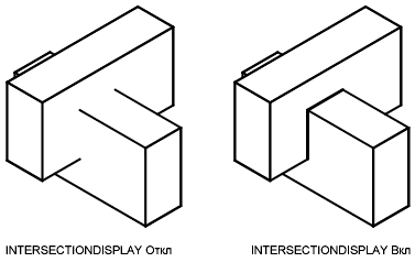 Системная переменная INTERSECTIONDISPLAY определяет отображение пересечений 3D-тел и поверхностей только в визуальном стиле "2D-каркас".