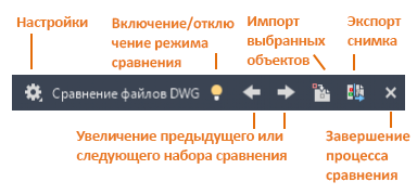 При запуске операции сравнения отображается панель инструментов сравнения файлов DWG.