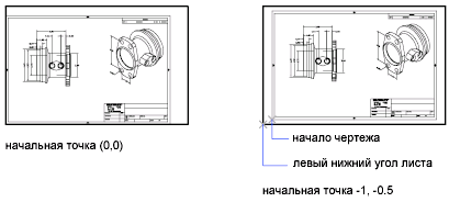 Смещение чертежа определяет смещение области печати относительно левого нижнего угла (начало) печатаемой области или кромок листа бумаги.