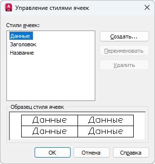 Отображение всех стилей ячеек, содержащихся в текущем стиле таблиц; возможность создания и удаления стиля ячеек.