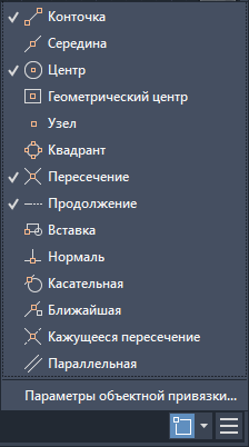 Если есть необходимость использовать один или несколько режимов объектной привязки более одного раза, то можно установить эти режимы в качестве текущих, чтобы они сохранялись для всех последующих команд. Например, можно задать в качестве объектных привязок конечную, среднюю или центральную точку.