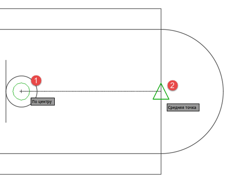 Объектную привязку можно включать во время любого запроса указания точек. По умолчанию при перемещении курсора над объектной привязкой на объекте отображаются маркер и подсказка. Эта функция называется «Автопривязка» ™ . Она обеспечивает визуальное отображение текущего режима объектной привязки.