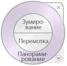 С помощью этого штурвала осуществляется доступ к основным инструментам 2D-навигации. Рекомендуется использовать эту функцию, если на используемом указывающем устройстве нет колеса прокрутки. Штурвал также предоставляет функции "Панорамирование" и "Зумирование".