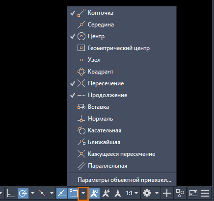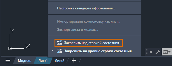 Прим.: Флажок указывает, что элемент отображается в строке состояния.