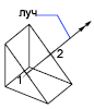Направление каждого луча определяется двумя точками, одна из которых, начальная, является общей для всех лучей. Запрос "Через точку" будет выдан повторно для создания нескольких лучей. Нажмите Enter для завершения работы с командой.