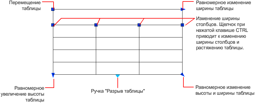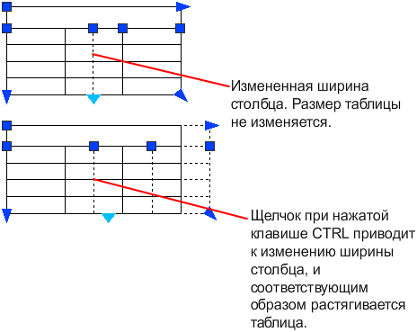 При изменении высоты или ширины таблицы изменяется только строка или столбец, расположенные рядом с выбранной ручкой. Общая высота или ширина таблицы остается неизменной. Чтобы изменить размер таблицы в соответствии с размером редактируемой строки или столбца, используйте ручку столбца при нажатой клавише Ctrl.