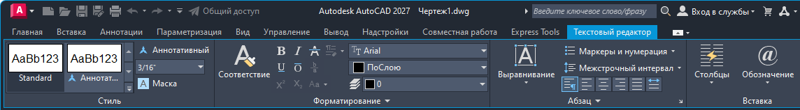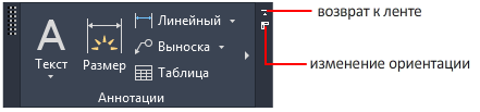Лента предоставляет компактную палитру всех необходимых инструментов для создания или изменения чертежа. Ее можно разместить следующим образом: