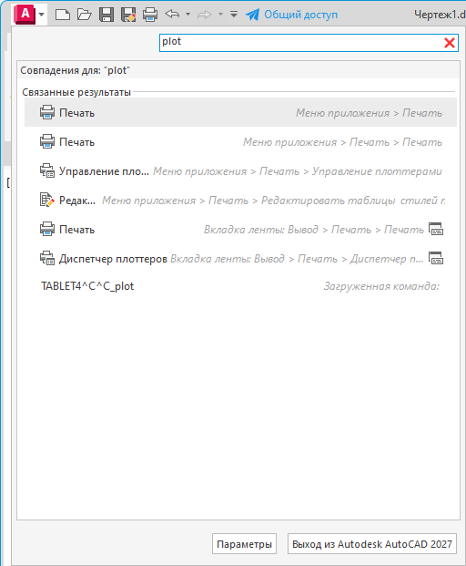 Поиск команд в различных расположениях интерфейса.