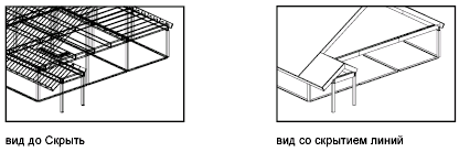 Команда СКРЫТЬ подавляет все скрытые линии на виде. После регенерации видимость этих линий восстанавливается.