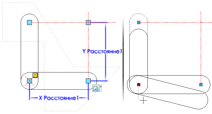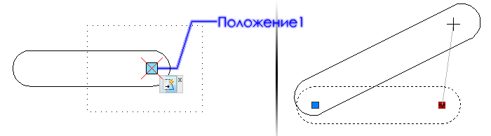 Операция растягивания, применяемая к точечному параметру, перемещает и растягивает выбранные объекты на заданное расстояние в любом направлении.