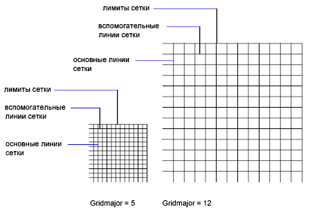 Например, при увеличении видимого размера чертежа плотность расположения отображаемых линий сетки автоматически уменьшается. Напротив, если видимый размер чертежа уменьшается, дополнительные линии сетки отображаются в той же пропорции, что и главные линии сетки.