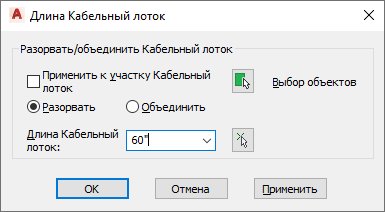 После построения участков кабельного лотка или короба можно разорвать отдельный сегмент или целый участок, а также объединить несколько сегментов. Это может быть полезным при определении количества отдельных сегментов, которые должен будет поставить изготовитель.