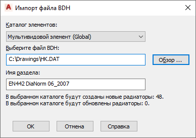 Radiator каталога многовидовых элементов в указанной папке. инструментарий AutoCAD MEP 2027 организует элементы в соответствии с именами подразделов, указанных в файле BDH, а также обновляет существующие радиаторы.