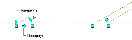 При повороте элементов, фитингов и врезок, присоединенных к другим объектам, в программе выполняется корректировка объектов для сохранения связности. Например, после разворота фитинга в программе может быть выполнена незначительная корректировка подсоединенных сегментов воздуховода. Если корректировка объектов невозможна, соединения с ними разрываются.