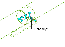В изометрическом представлении можно также повернуть элемент, фитинг или врезку вокруг осевой линии на заданный угол с помощью ромбовидной ручки поворота (