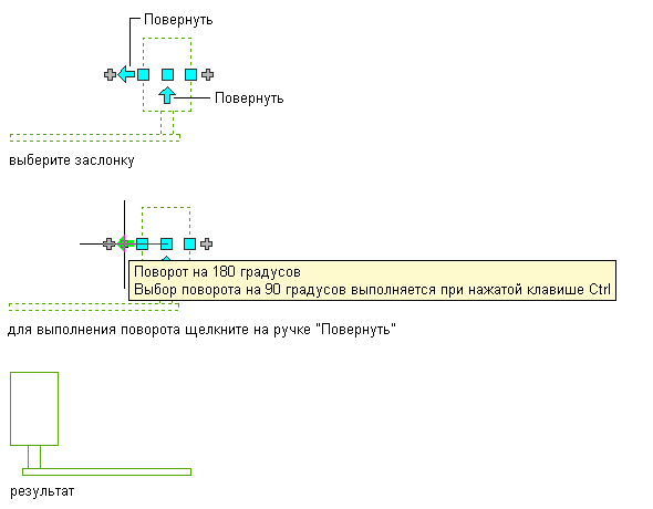 Поворот заслонки на виде в плане на 90 градусов