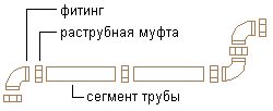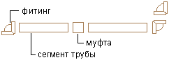 ![]() Фитинг к трубе: считается, что фитинги и сегменты труб имеют концы с раструбами, в которые можно вставить муфту. Для соединения фитинга и трубы добавляется муфта. Труба к трубе: для соединения сегментов труб добавляется муфта. Фитинг к фитингу: для соединения фитингов добавляется муфта. |