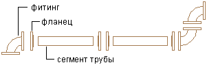 ![]() Дополнительные объекты не добавляются. Фитинги и сегменты труб соединяются непосредственно друг с другом. |
