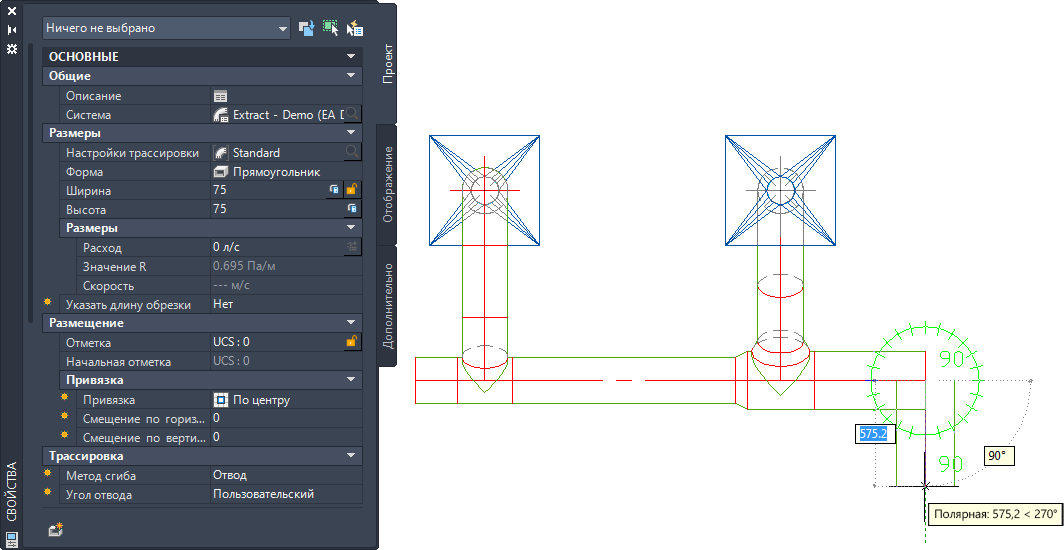 Если выпускному оборудованию назначены значения потока, в процессе рисования участков воздуховодов можно рассчитывать размеры воздуховодов с помощью инструмента определения текущих размеров. Инструментом определения текущих размеров можно также пользоваться при изменении существующих участков воздуховодов.