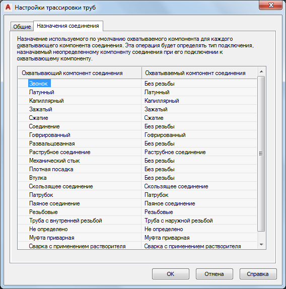 1. В диалоговом окне "Настройки трассировки труб" перейдите на вкладку "Назначения соединения".
