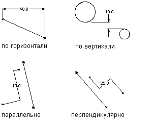 Может задаваться для пар геометрических объектов всех типов. Определяет значение размера между двумя ами параллельно прямой, проведенной через две указанные точки этих ов. Это значение размера не может быть отрицательным.