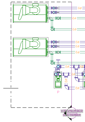 Ссылочные чертежи отображаются на виде в плане. Вид сечения находится в заданной точке на чертеже общего вида. Слои для каждого объекта чертежа сохраняются на виде сечения. Когда вид сечения помещается в лист, номер сечения вставляется в заголовок марки.