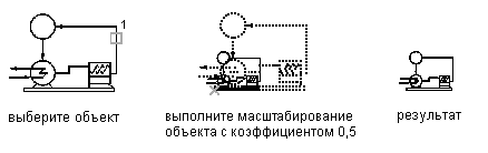 В следующей процедуре показан пример уменьшения размера условного обозначения вполовину с помощью масштабирования его с коэффициентом 0,5. Числа, заключенные в круглые скобки, относятся к рисунку, который приведен ниже описания процедуры.