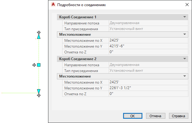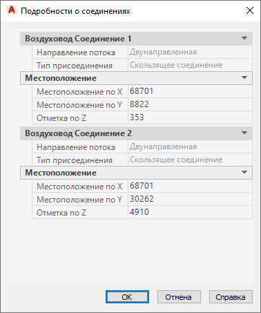 Пример сведений о соединении воздуховода