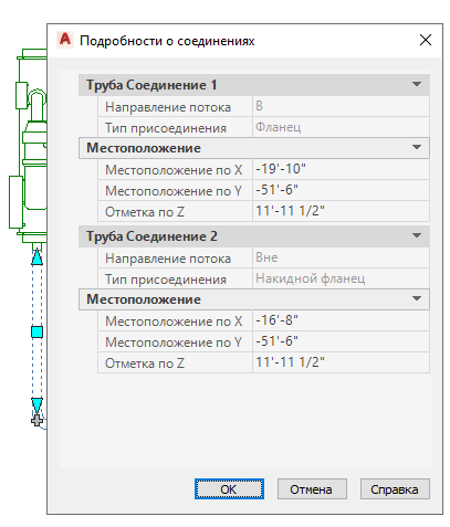 Пример сведений о соединении трубы