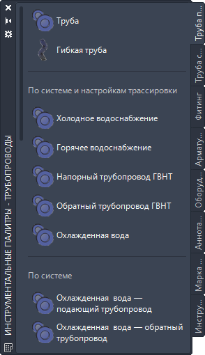 Инструменты объектов для добавления объектов трубопроводов