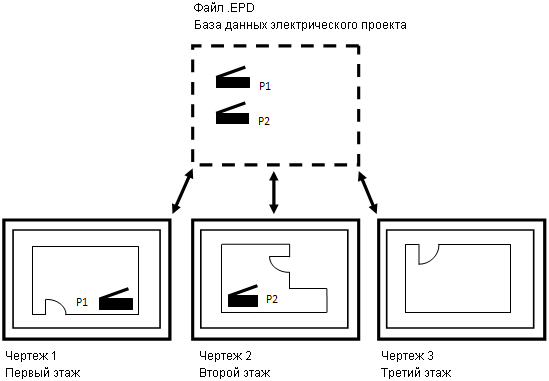 База данных электрического проекта требуется при работе с чертежами, включающими электрические схемы. Она может указываться в любое время до или после создания цепей. Если база данных не указывается после добавления в чертеж электрических цепей, появляется подсказка, предлагающая указать имя файла базы данных электрического проекта.