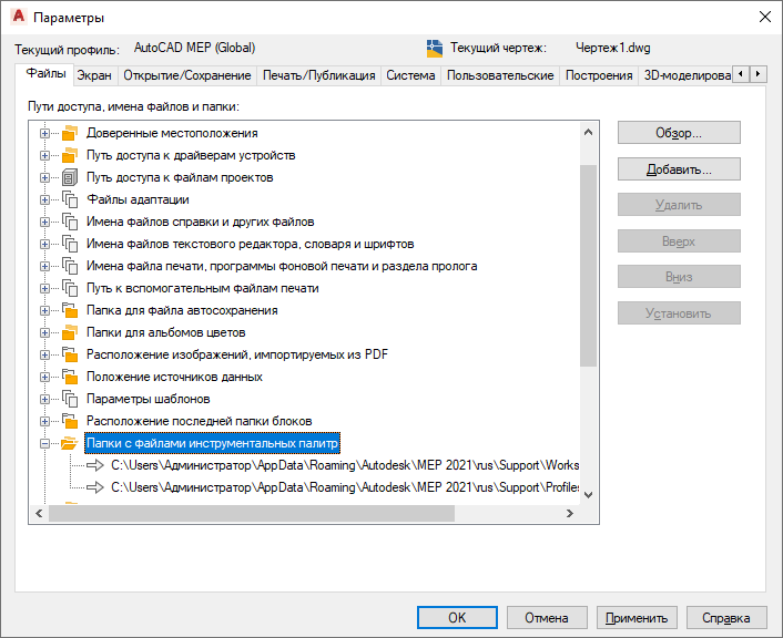 (ATC), предназначенного для инструментальных палитр, ориентированных на данный проект. При закрытии текущего проекта или назначении текущим другого проекта ориентированные на проект инструментальные палитры удаляются из списка путей.