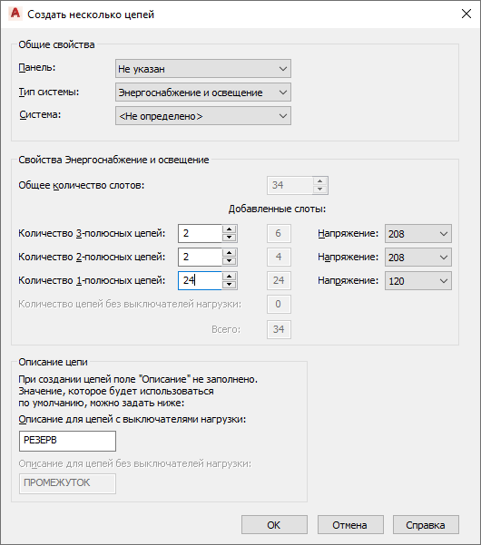 - В диалоговом окне "Создать несколько цепей" в группе "Общие свойства" задайте следующее: