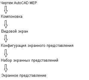 Эти компоненты имеют иерархическую природу. Каждая конфигурация экранных представлений содержит наборы экранных представлений, а каждый набор экранных представлений содержит экранные представления. Сочетание этих компонентов создает систему экранных представлений: