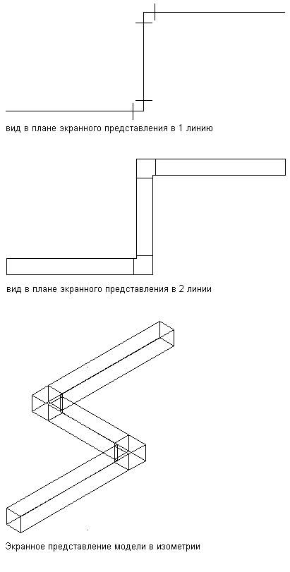Для большинства объектов инструментарий AutoCAD MEP 2027 имеются экранные представления «В 1 линию», «В 2 линии», «Модель» и «План». Это вызвано тем, что общепринятые способы проектирования требуют представления инженерных систем здания в различных видах.