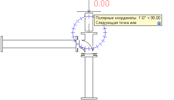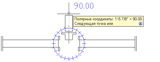 Ручка добавления используется для создания нового ответвления на подсоединенном фитинге под углом 90 градусов.