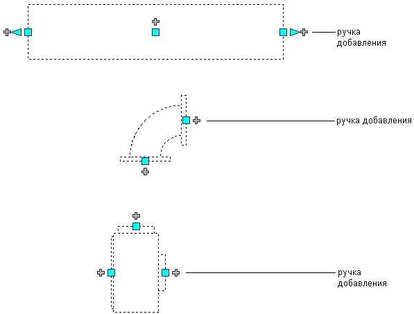 Ручка добавления используется для создания нового ответвленного участка в средней точке существующего участка.