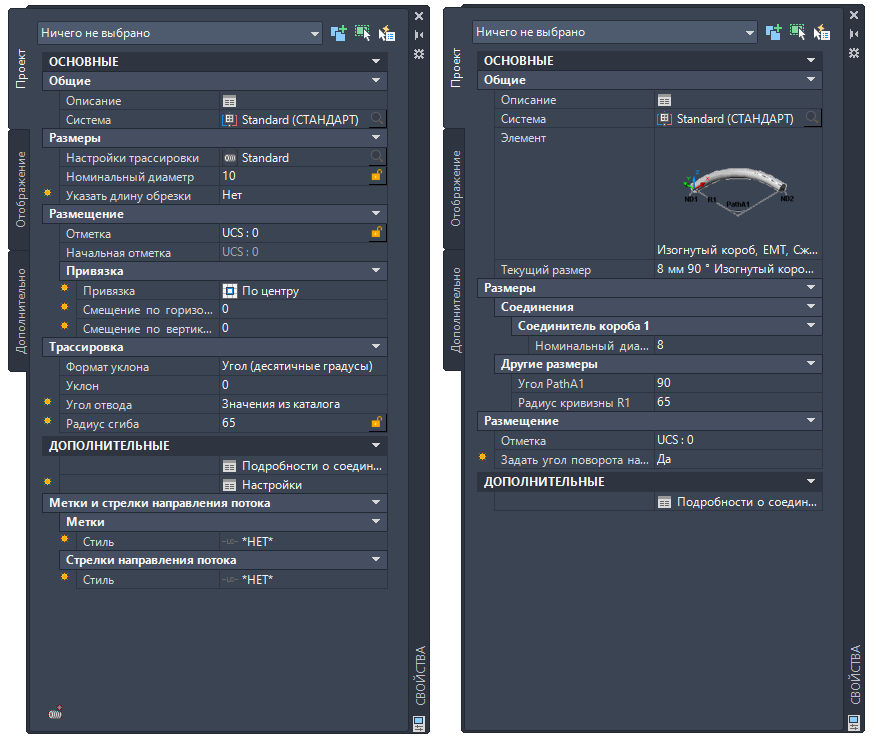 Палитры свойств короба* и фитингов короба