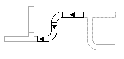 Выбранному участку между ответвлениями будет назначено указанное направление потока. Направление потока участка прерывается на фитингах ответвлений (фитинги, имеющие три или более соединителей, такие как тройники и крестовины) и на мультивидовых элементах.