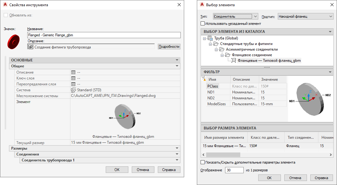 Совет: Чтобы отключить в этом диалоговом окне использование выбранных элементов, установите флажок "Использовать незаданный элемент". Этот флажок позволяет создать на инструментальной палитре инструмент, не содержащий заданных свойств. Этот новый инструмент можно использовать для запуска команды объекта "Добавление фитинга" во время создания участка трубы.