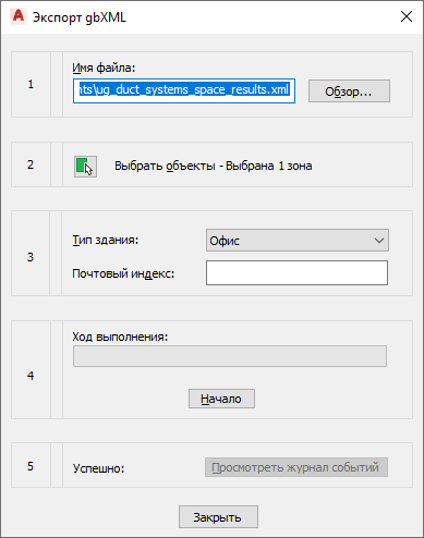 После создания помещений и группирования их в зоны можно экспортировать эту информацию в файл формата Green Building XML (gbXML) следующим образом.