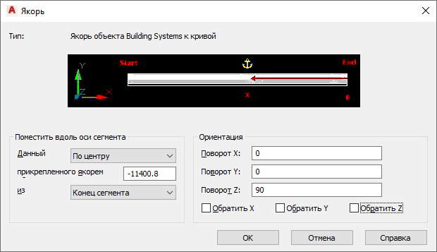 Якорь связывает объект инструментарий AutoCAD MEP 2027 с другим объектом или с разметочной кривой или сеткой. В области "Трубопровод" эта электронная таблица применяется к фитингам, в которых используются якоря (таким как врезки). В области "Схемы" она применяется к обозначениям. Здесь можно просмотреть и изменить точки вставки X, Y и Z в текущей системе координат, а также угол поворота закрепленного якорем объекта. Можно перемещать прикрепленные якорем объекты вдоль оси сегмента путем определения местоположения через расстояние или путем обращения якоря вокруг оси X, Y и Z. Вкладка "Якорь" доступна только после выполнения операции прикрепления объектов с помощью инструмента "Якорь".