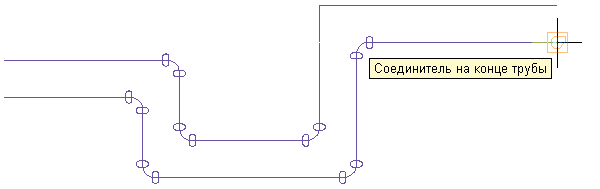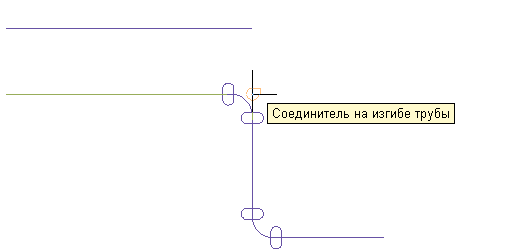 Следует отметить, что соединитель на кривой трубы у отводов и других криволинейных фитингов отображается в месте логического пересечения осевых линий фитингов. Это обеспечивает требуемое расстояние между трубами на протяжении всего параллельного участка.