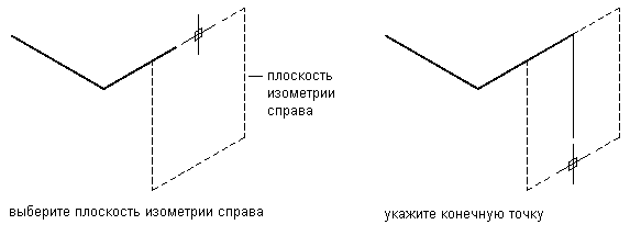 - Для изменения плоскости изометрии, в которой производится рисование, в палитре свойств в списке "Плоскость изометрии" выбирают другую плоскость изометрии и затем продолжают указывать точки линии для прорисовки.