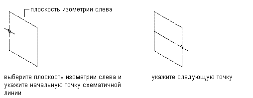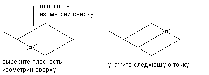Вычерчивание линии схемы на верхней плоскости изометрии