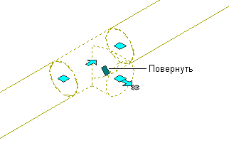 | повернуть фитинг на заданный пользователем угол, | щелкните на ручке поворота (