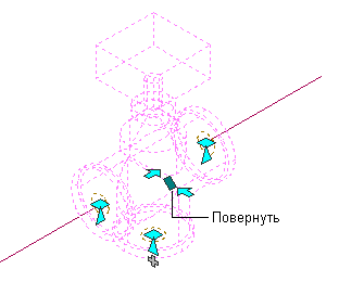 ) ручки поворота позволяют повернуть объект на любой заданный пользователем угол относительно осевой линии этого объекта.