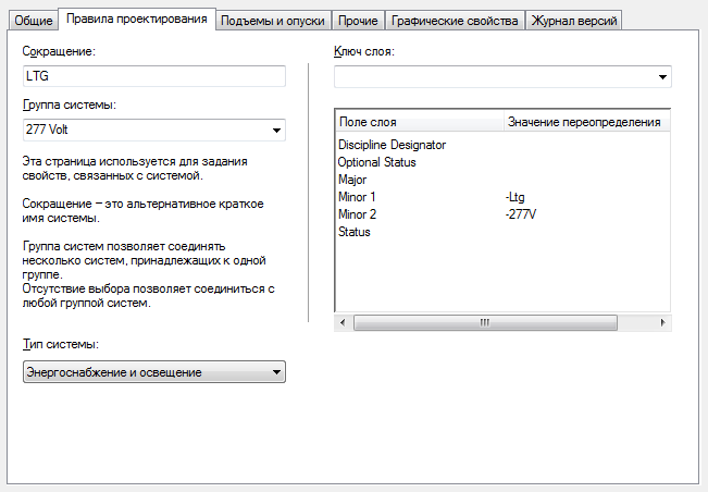 | Ключ слоя | Указывает слой, на который добавляются объекты данной системы. |