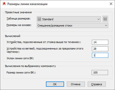 2. В разделе "Проектные значения" выберите для параметра "Размеры на основе:" вариант "Смещение/домашние стоки".